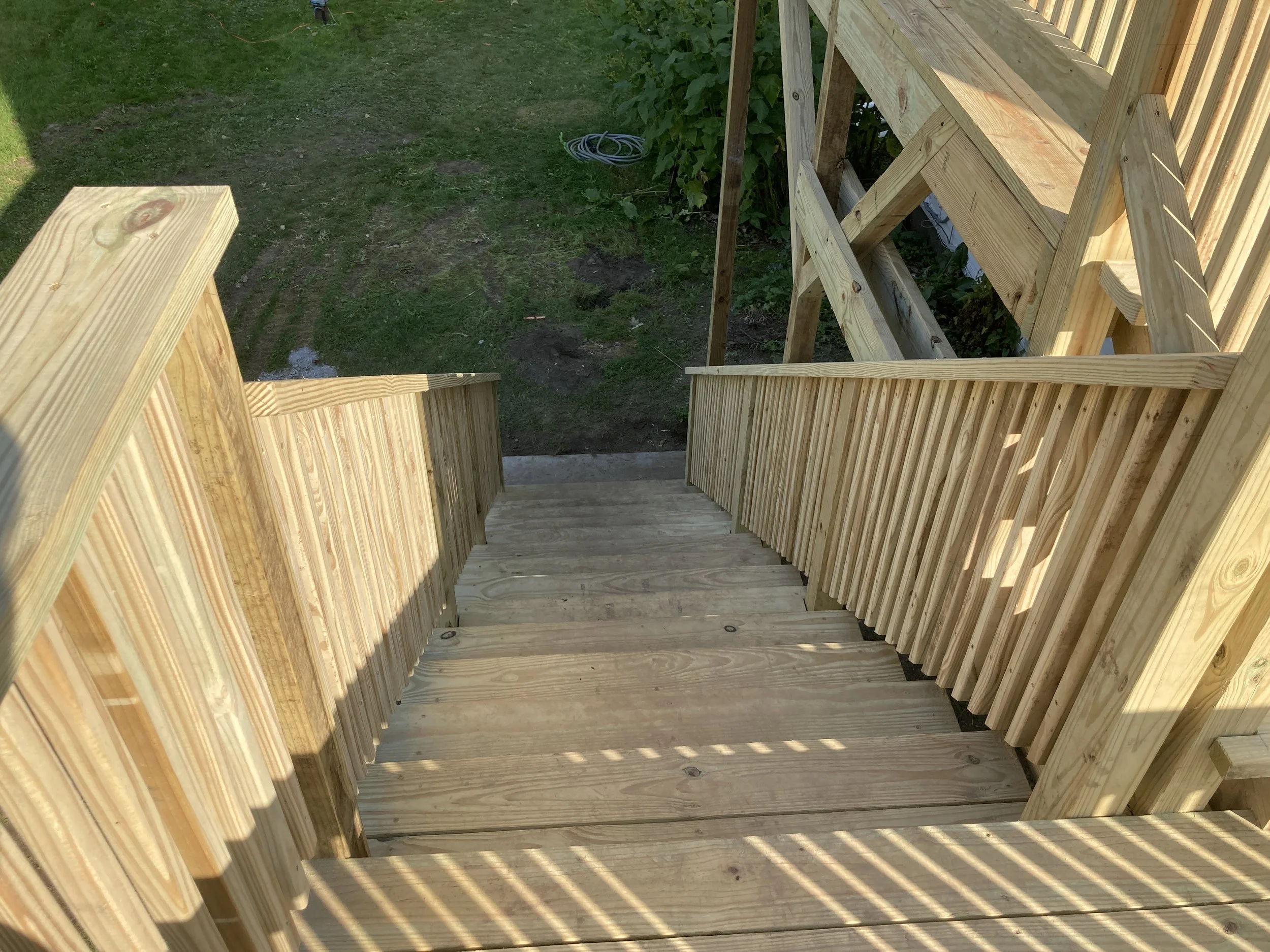 The original deck to this second-story apartment was completely rotten and needed a full replacement along with new, code-complaint stairs.